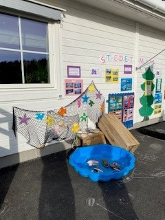 Barnas utelekeområde utformes i takt med våre tema og årstider. Det gir barn mulighet til å leke ut sine interesser både ute og inne.
