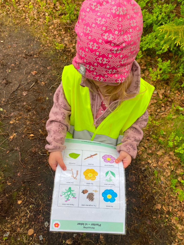 I naturen er det mye å studere, og vi har egne naturlotto for hver årstid. På denne måten trener vi oppmerksomhet, samarbeid og språk, samtidig som naturfaget blir levende.
