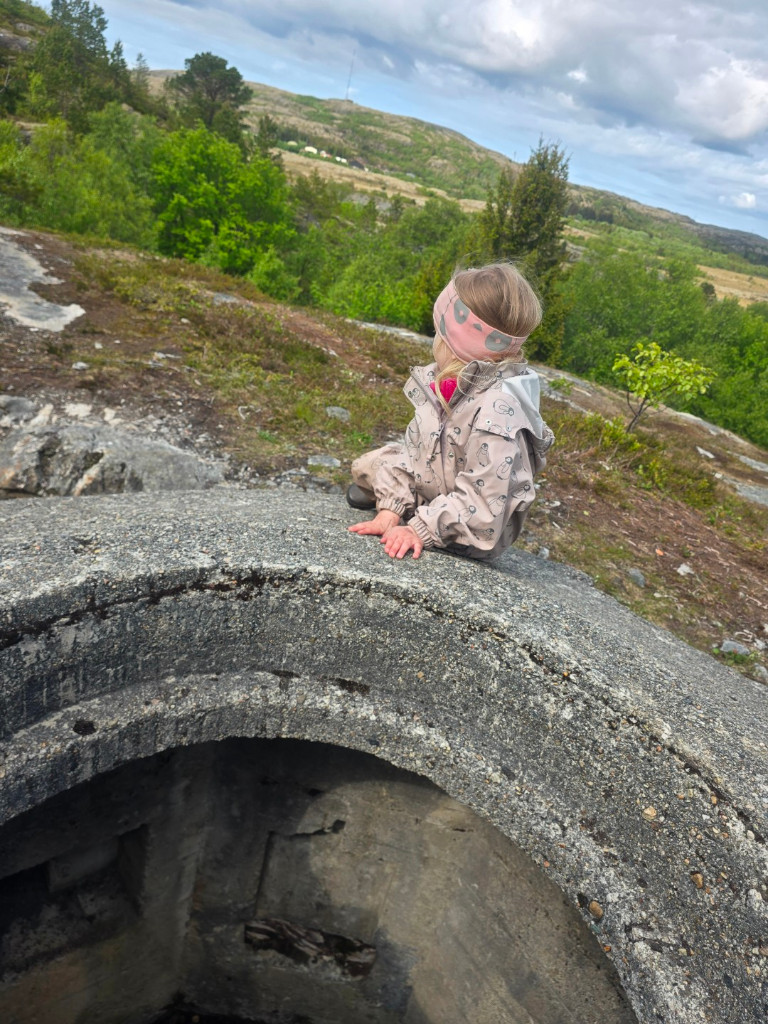 Bunkersene på Gluggen har en spennende historie som barna liker å høre gang på gang. Her kan vi speide utover landet, studere hvordan bunkeresene er bygget og slippe fantasien løs.