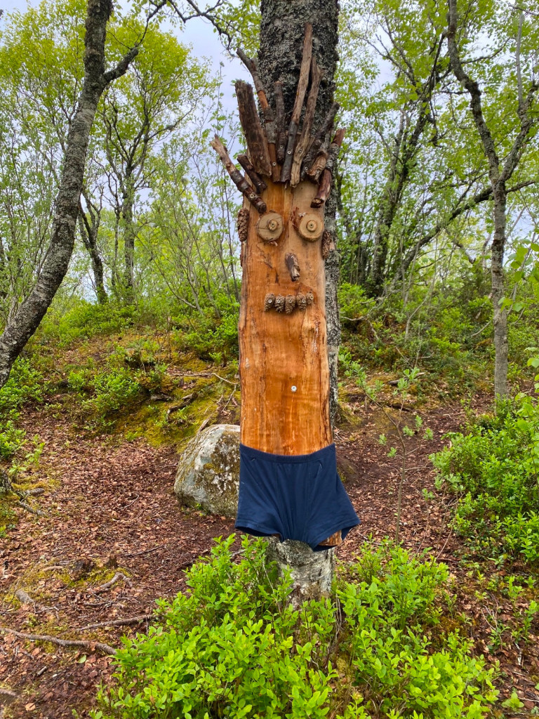Barnehagen eier deler av lysløypa på Rørvik, og her har vi bygget vår egen gapahuk med naturlekeplass. Her kan vi spise både lunsjen og frokosten vår, for området byr på mange spennende aktiviteter. Før sommeren flyttet skogtrollet inn ved gapahuken, og han passer på at ingen gjør rampestreker med naturlekeplassen vår.